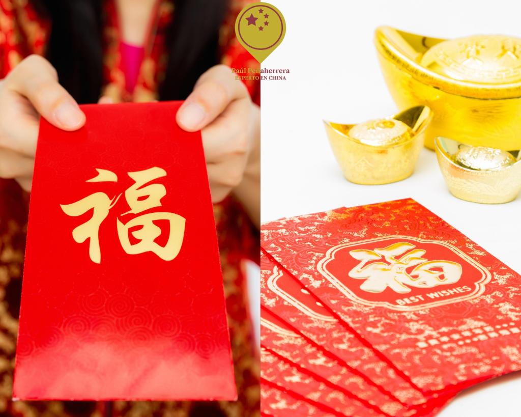 El «红包» (hóng bāo) se trata de un sobre de papel rectangular que contiene cierta cantidad de dinero, cuyo nombre se debe a que el color del papel que se utiliza siempre es rojo.